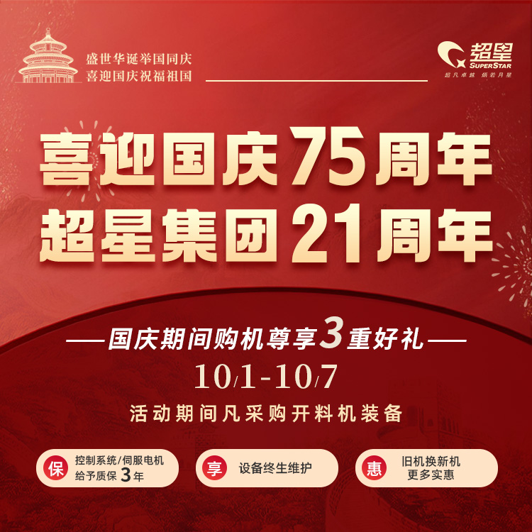 值此國慶佳節(jié)來臨之際,我們超星數(shù)控為回饋廣大客戶的支持與厚愛,特舉辦“國慶特惠”活動。我們承諾以高品質的產(chǎn)品、優(yōu)惠的價格,為您的生產(chǎn)線注入新動力!