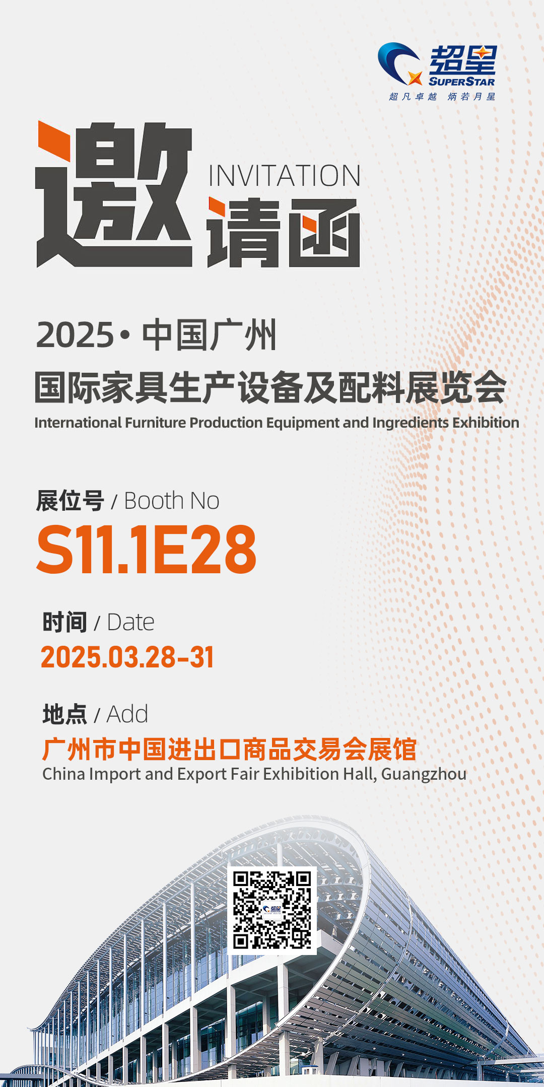 超星數(shù)控正式向各界發(fā)出誠(chéng)摯邀請(qǐng),誠(chéng)邀行業(yè)同仁、合作伙伴以及廣大關(guān)注數(shù)控領(lǐng)域的朋友們,參加即將于2025年3月28日~31日在廣州市中國(guó)進(jìn)出口商品交易會(huì)展館盛大開(kāi)幕的國(guó)際家具生產(chǎn)設(shè)備及配料展覽會(huì)。作為數(shù)控設(shè)備生產(chǎn)領(lǐng)域的領(lǐng)軍企業(yè),超星數(shù)控將攜一系列前沿產(chǎn)品和創(chuàng)新技術(shù)亮相此次展會(huì),全力為行業(yè)發(fā)展注入新動(dòng)力。