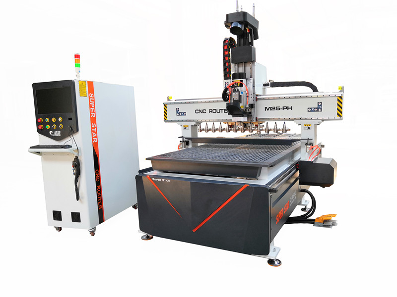 本機(jī)型采用直排式跟隨式自動(dòng)換刀系統(tǒng),不影響進(jìn)料高度和平臺(tái)面積。